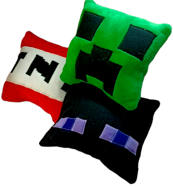 Almohadas Minecraft de 30 x 30cm y rellenos de vellón siliconado.